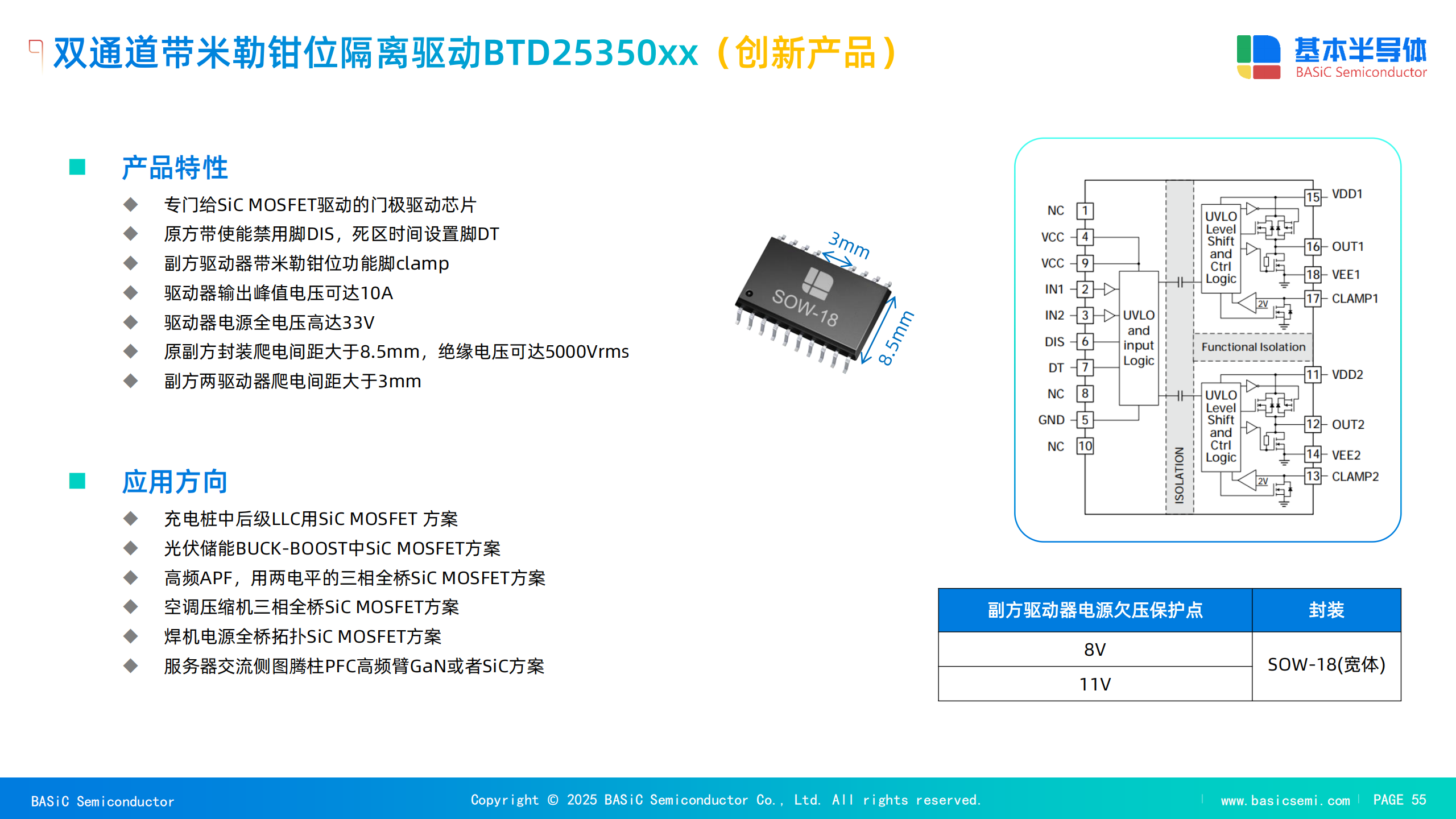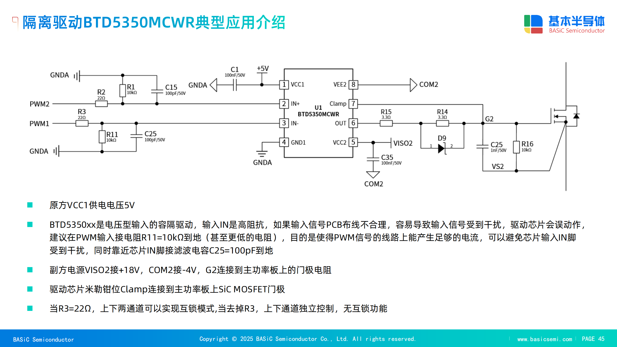 稳健的栅极驱动IC:专为SiC设计的驱动IC必须具备高驱动电流能力、低传播延迟和高共模瞬态抗扰度(CMTI),以确保在高速开关环境下稳定可靠地运行。